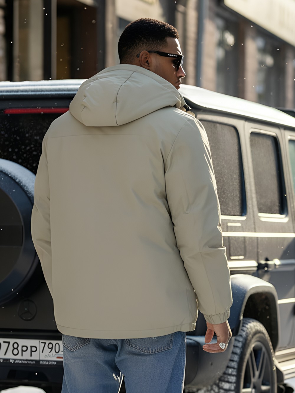 Капюшон надежно защищает от различных внешних факторов, таких как ветер.