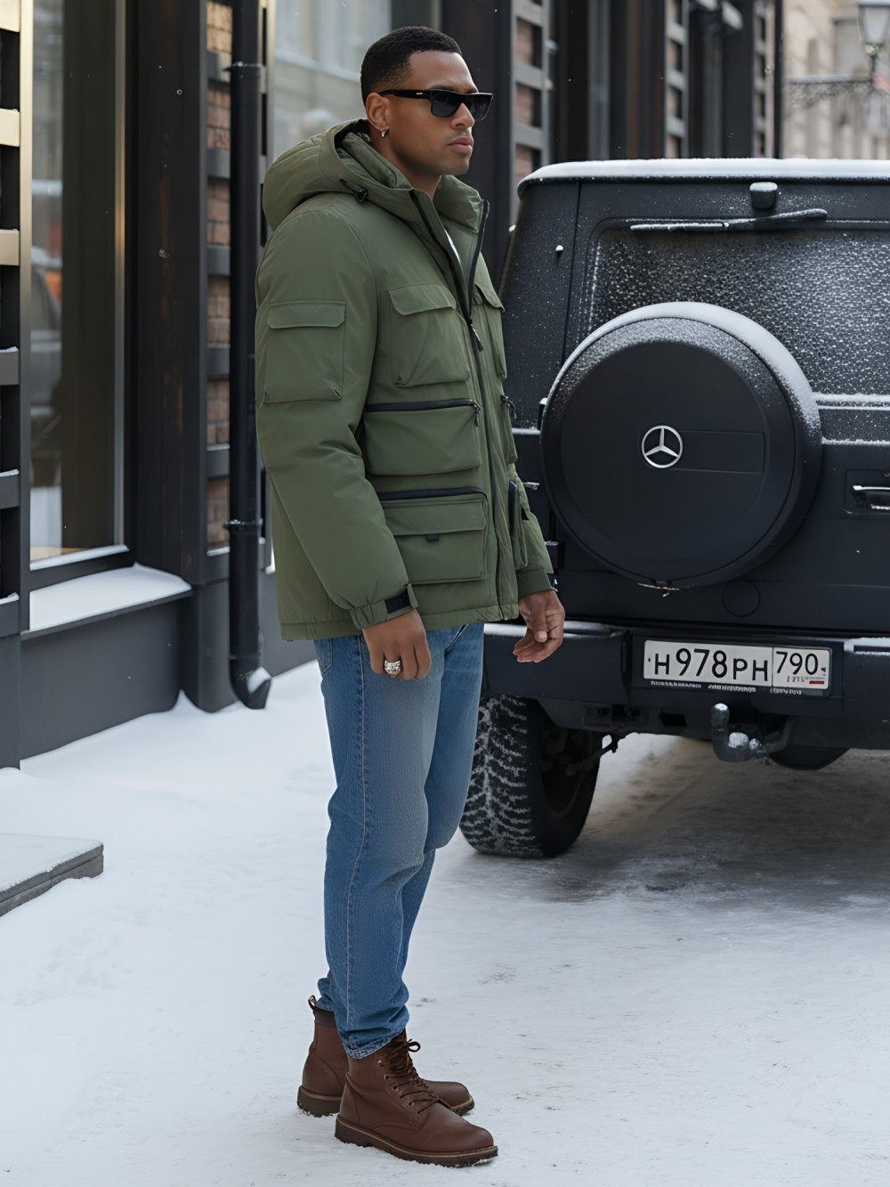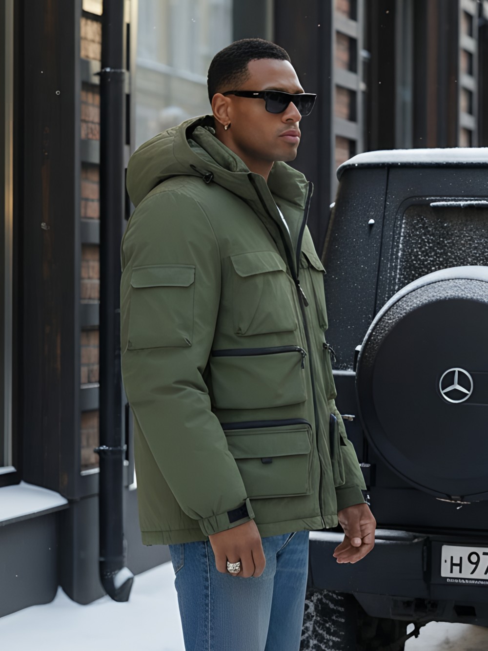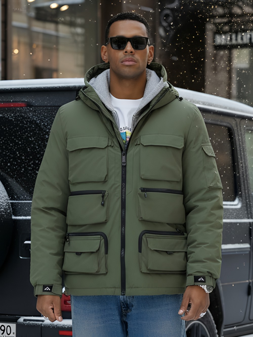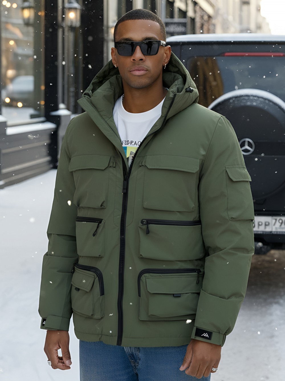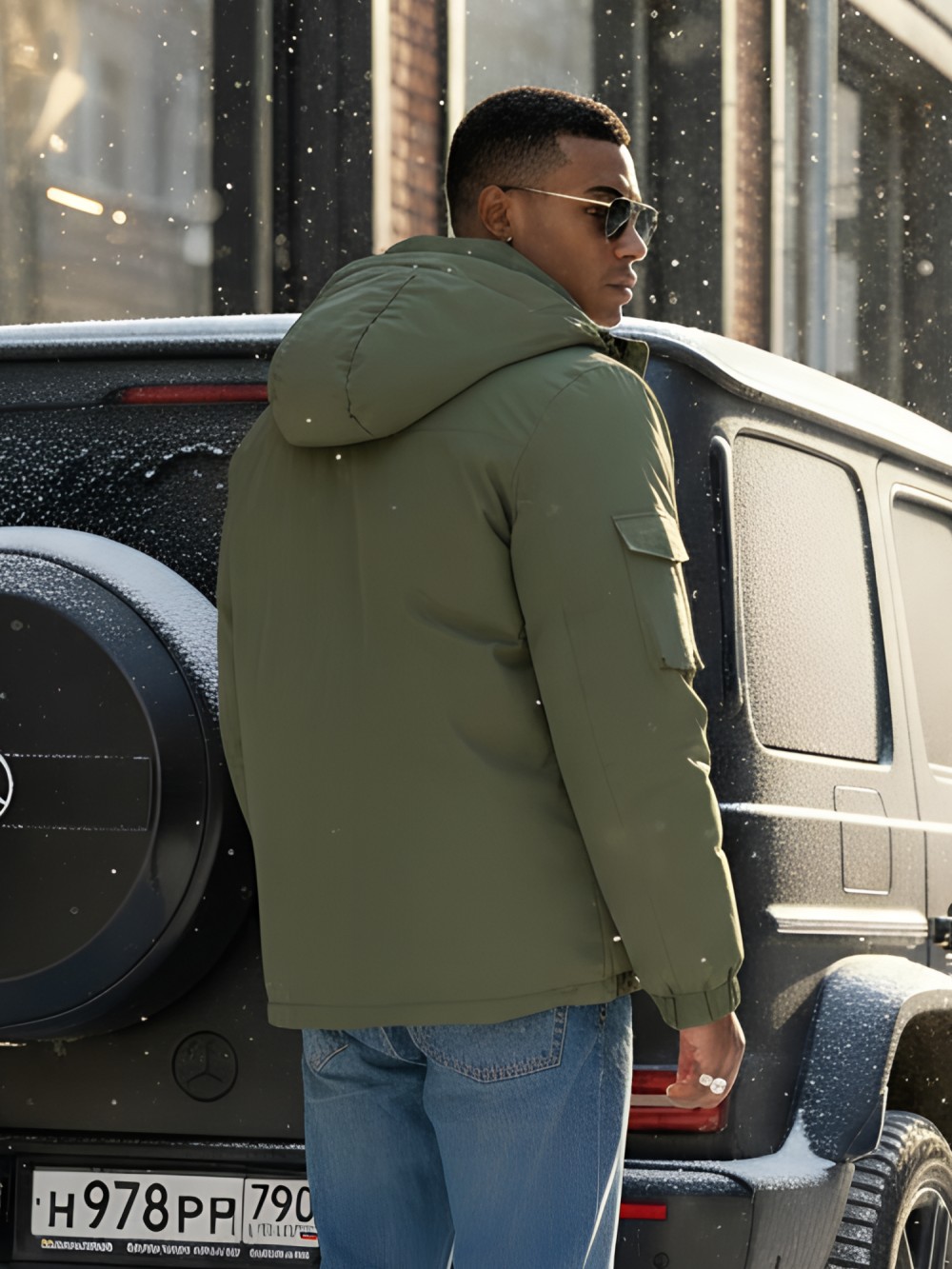Капюшон надежно защищает от различных внешних факторов, таких как ветер.