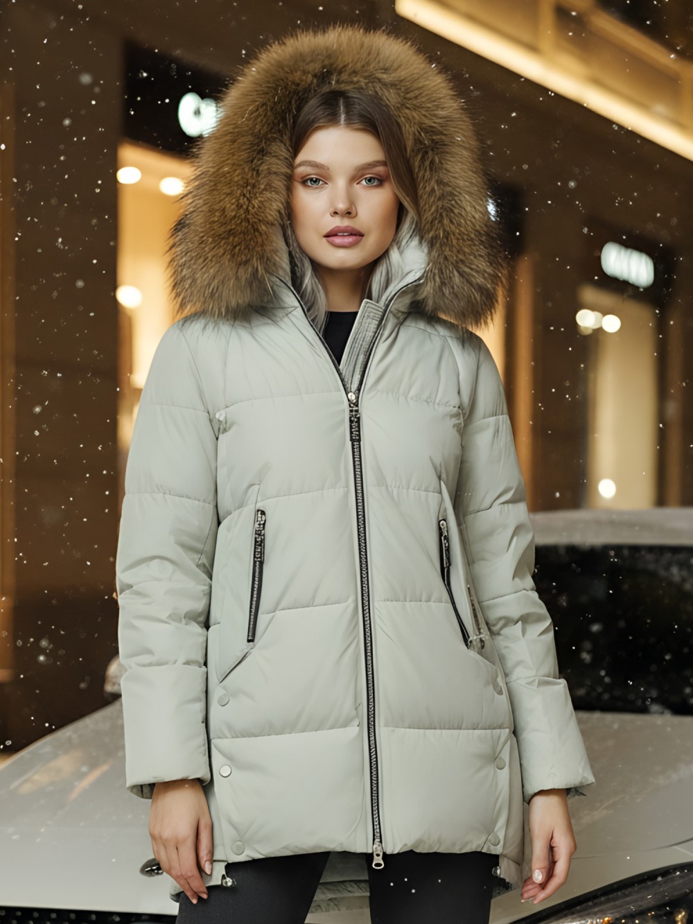 Натуральный мех енота: Роскошная отделка из натурального меха придает куртке изысканный вид и добавляет тепла в самые морозные дни. Съемная опушка придает изящества образу и смотрится благородно.