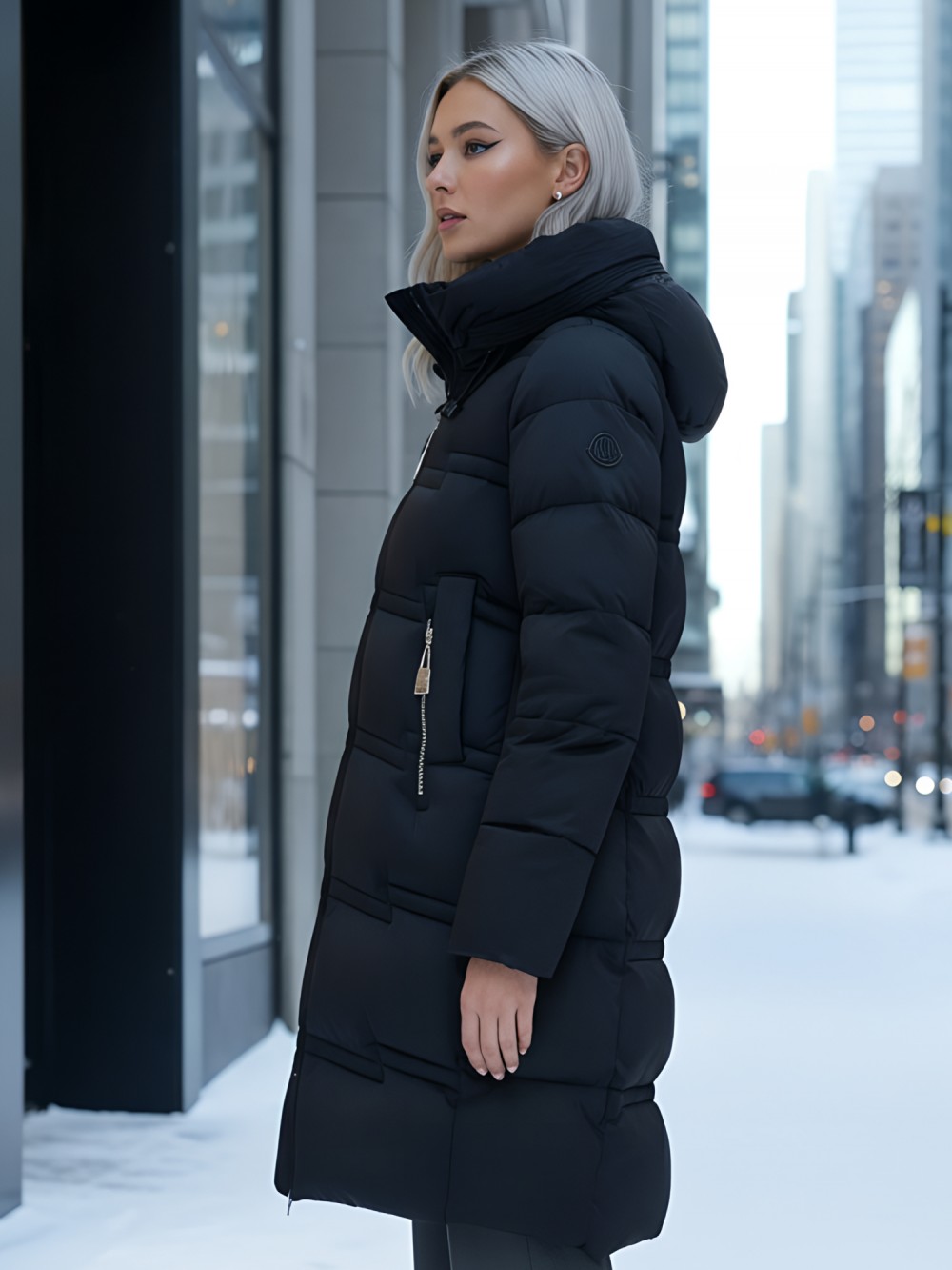 Надёжно защищает от холода, ветра и осадков. Идеален для зимней погоды, не требует головного убора.
