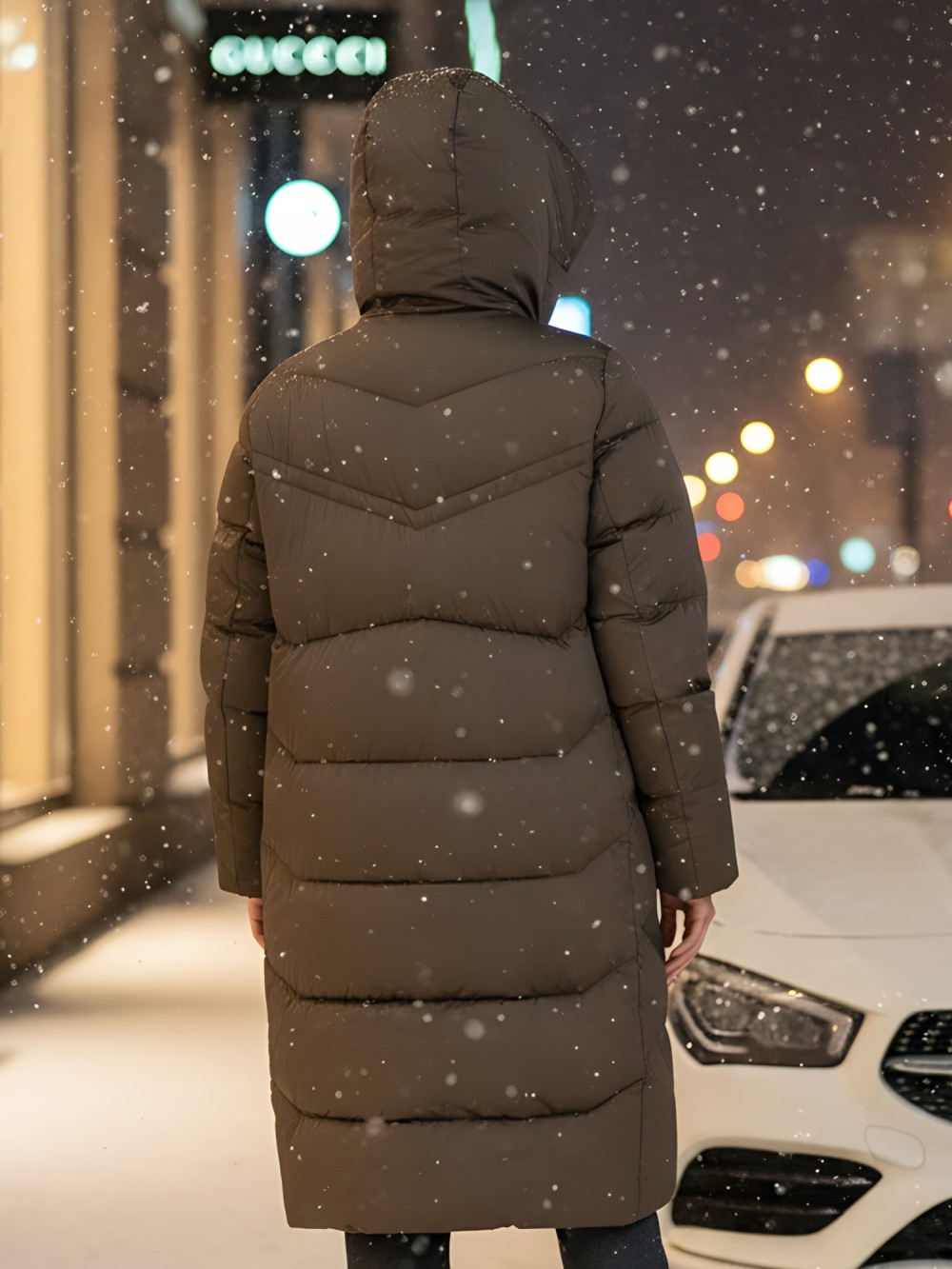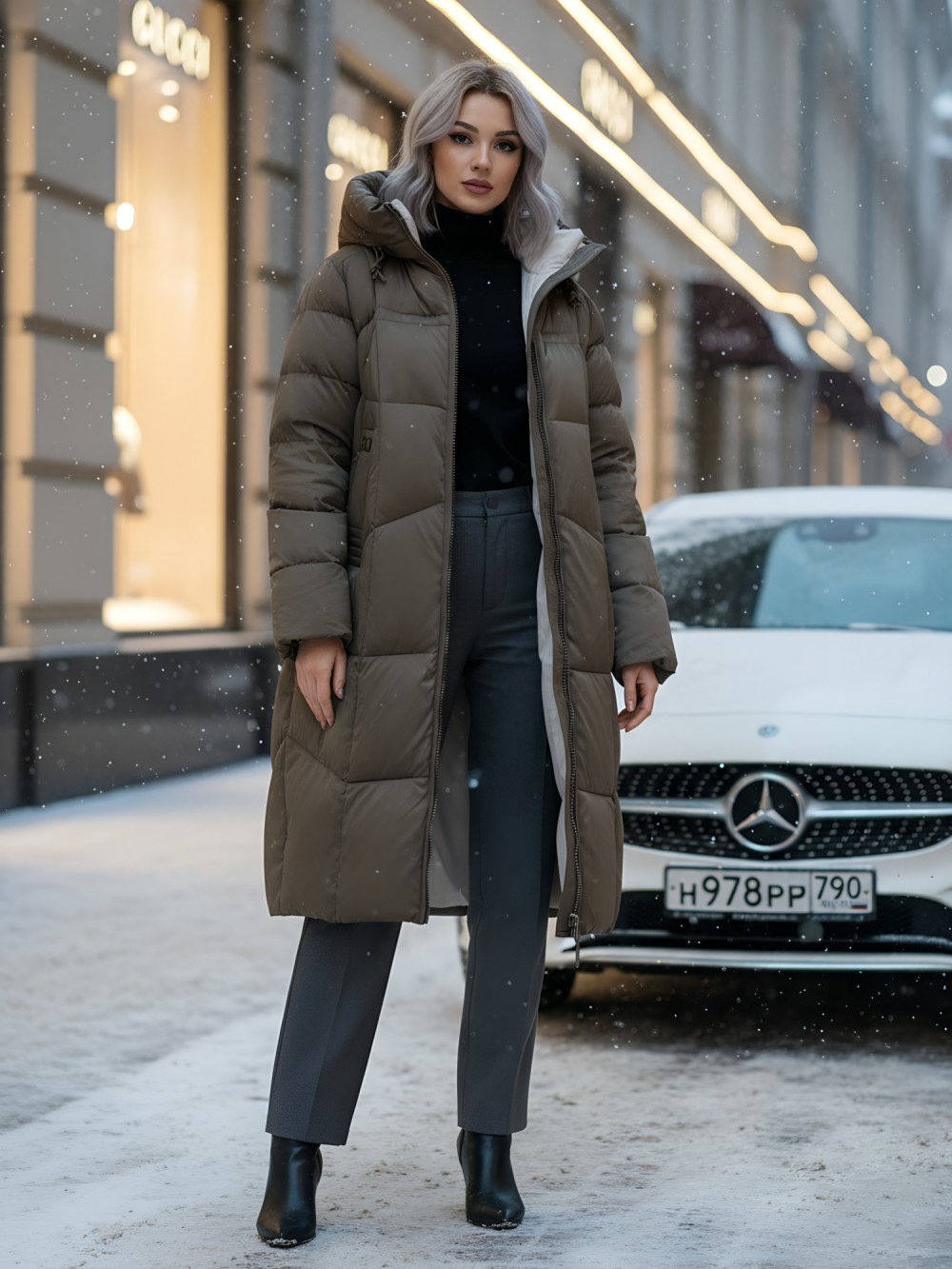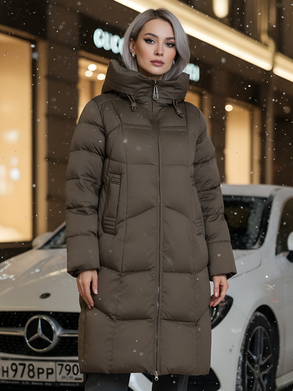 Надёжно защищает от холода, ветра и осадков. Идеален для зимней погоды, не требует головного убора.