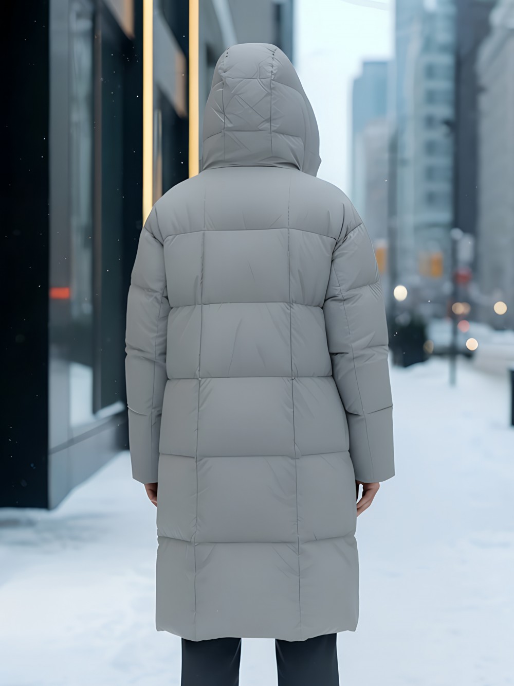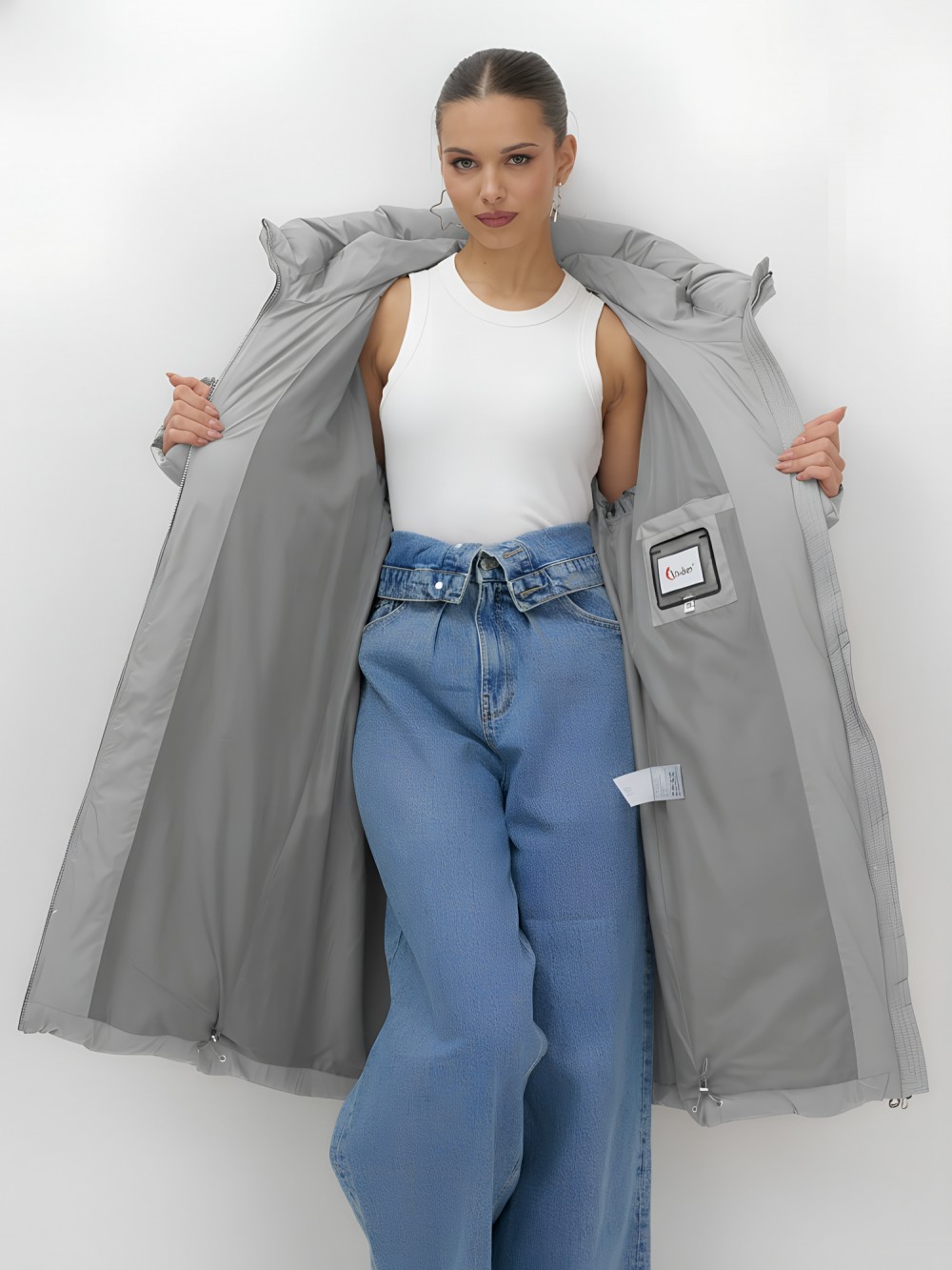 Элегантный и свободный покрой ниже колена создает стильный силуэт, а удлиненная длина и прямой фасон добавляют нотку изысканности. Капюшон с фиксатором и манжеты обеспечивают дополнительную защиту от холода и ветра, а удобные внутренние карманы с магнитными застежками станут идеальным местом для хранения мелочей.