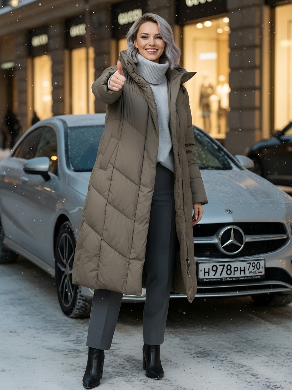 Надёжно защищает от холода, ветра и осадков. Идеален для зимней погоды, не требует головного убора.