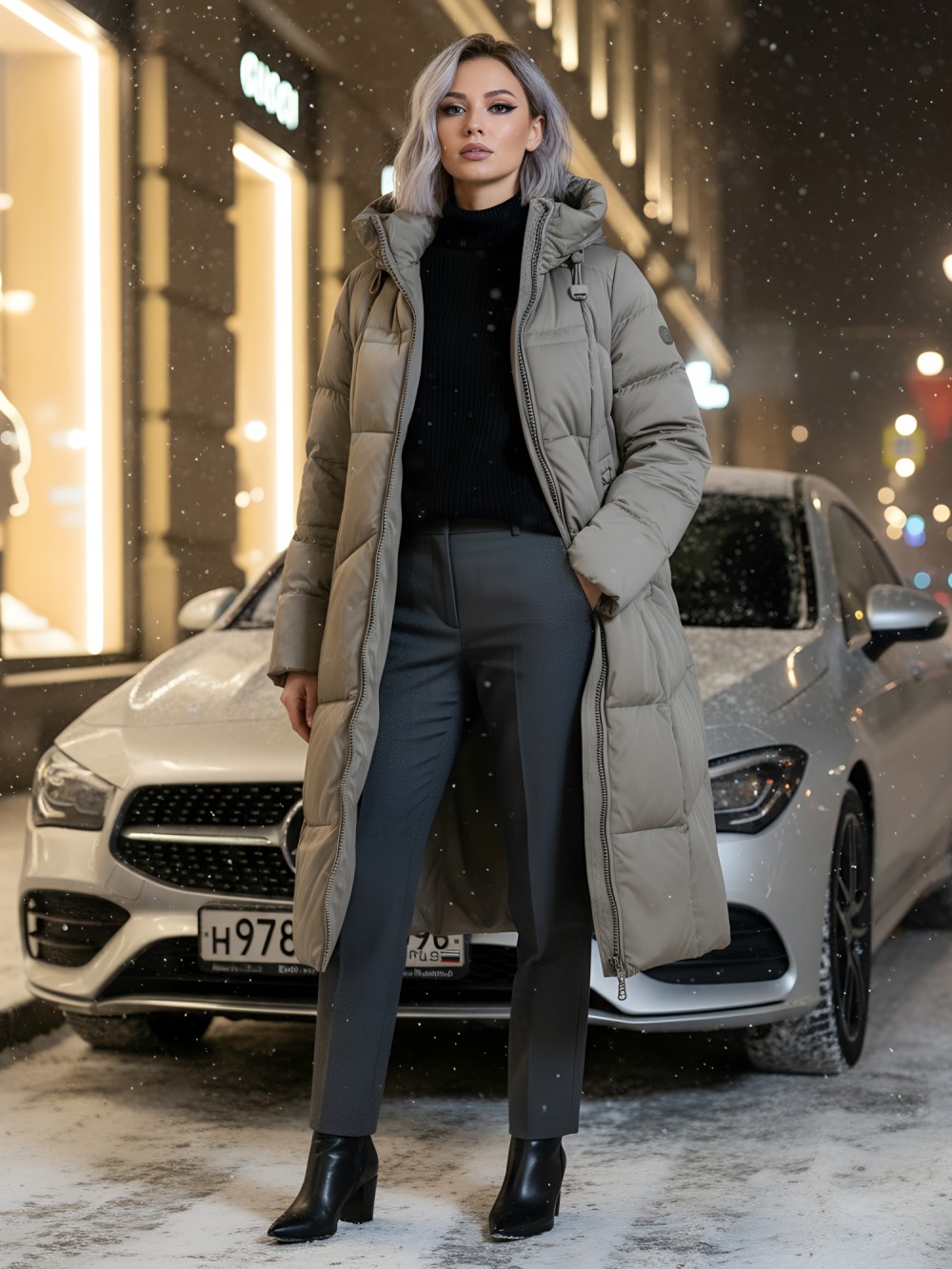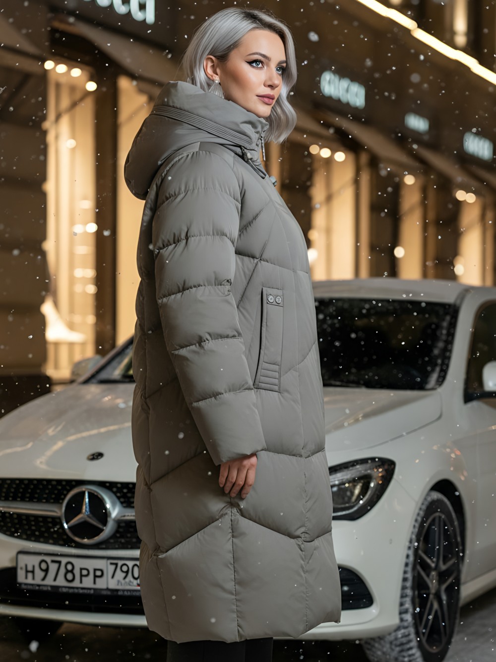 Надёжно защищает от холода, ветра и осадков. Идеален для зимней погоды, не требует головного убора.