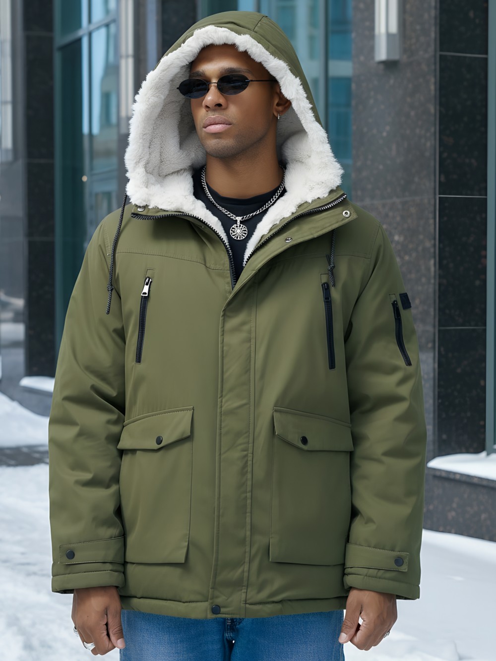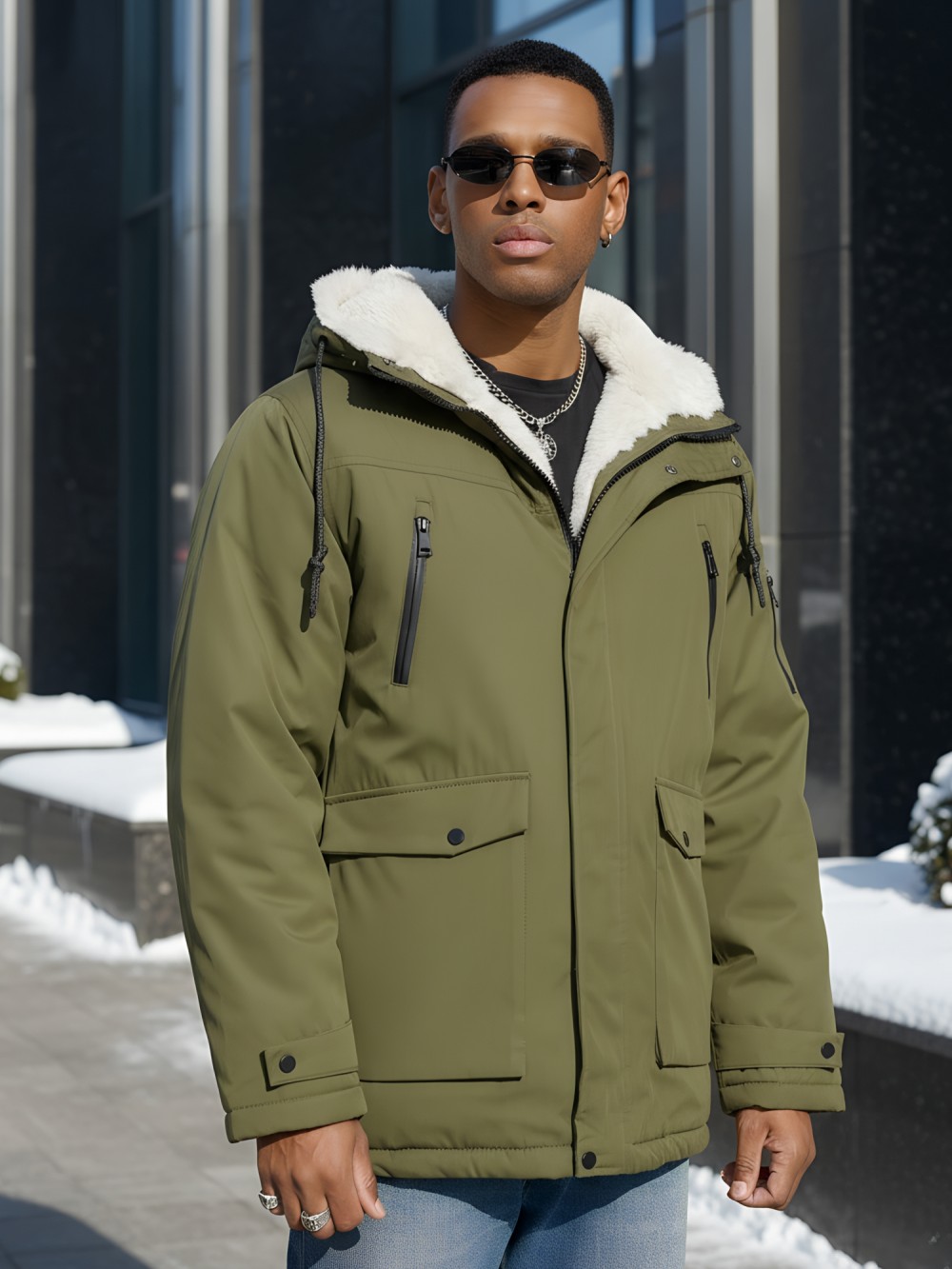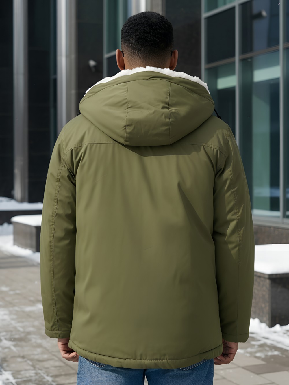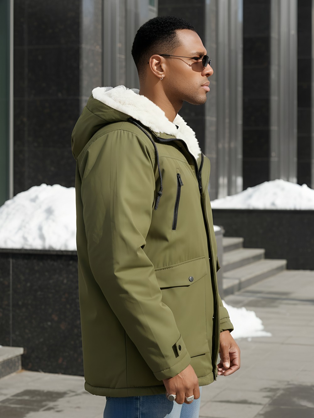 Капюшон надежно защищает от различных внешних факторов, таких как ветер.